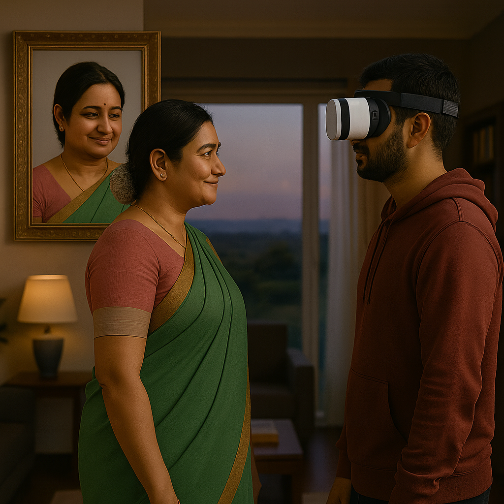 In this VR experience, your loved one gently walks toward you and stands before you โ a heartfelt moment that feels truly real. The scene lasts around 2 minutes with soft background music and a peaceful heavenly setting. ๐ถ Note: Price is for the VR experience only.Our HappyTears VR Box โ โน1200, or use any compatible VR headset available online.๐ Theme quality or visuals may slightly differ from the graphics shown on the product page.