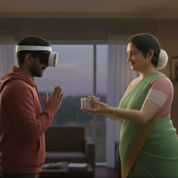 All moments combined โ sitting, hugging, wishing, gifting, and speaking photo โ into a full 4 minute cinematic VR reunion. A complete emotional journey that captures every connection. ๐ด๐ด๐ด๐ด๐ด๐ด๐ด๐ด๐ด๐ด๐ด๐ด๐ด๐ด๐ด Note: The price is for the VR video only.Youโll need a VR headset to view it.You can either: Purchase our official HappyTears VR Box for โน1200, or Use any compatible VR box available online within your budget. Theme quality or visuals may differ slightly from the graphics shown on the product page.