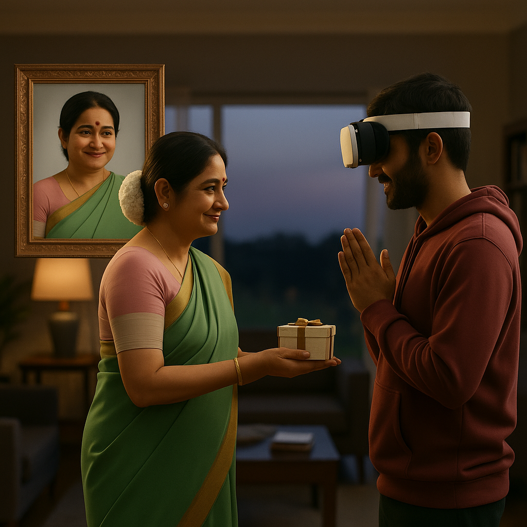 The person appears offering a symbolic heavenly gift along with a warm hug. A perfect choice for birthdays, anniversaries, or remembrance days.๐ง 3 minute experience with calm background music. ๐ด๐ด๐ด๐ด๐ด๐ด๐ด๐ด๐ด๐ด๐ด๐ด๐ด๐ด๐ด Note: The price is for the VR video only.Youโll need a VR headset to view it.You can either: Purchase our official HappyTears VR Box for โน1200, or Use any compatible VR box available online within your budget. Theme quality or visuals may differ slightly from the graphics shown on the product page.